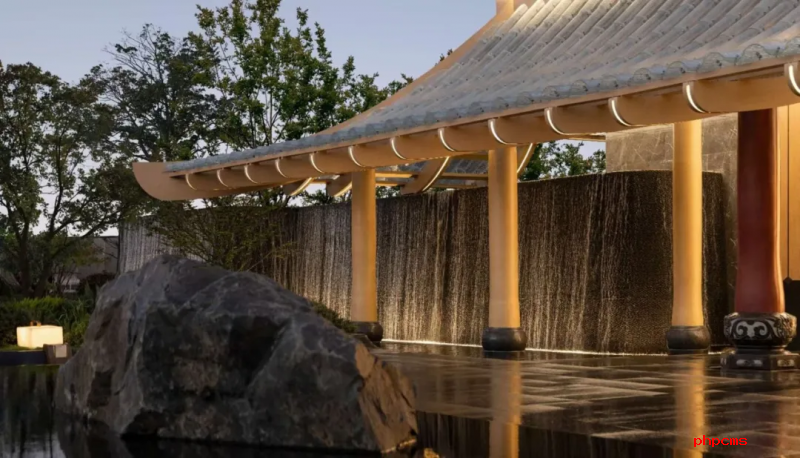 在景观营造上,项目深度萃取宋代美学精髓,打造“六重风雅场景”。入口门楼师法宋代“思惠楼”形制,以现代工艺转译传统木构智慧;中庭水院以“角韵水榭”为核心,水面映照飞檐连廊剪影,尽显宋式雅致;下沉庭院“舟桥叠瀑”借鉴宋代山水画“留白”与“虚实相生”的艺术手法,打造约7.8米飞瀑与踏水虹桥,形成景观高潮;全长约70米的风雨连廊,以规整柱列与自然石材相映,勾勒出“凉月满庭白,清风入夜流”的静谧画境,为居者带来内敛隐贵的典藏级社区人居体验。