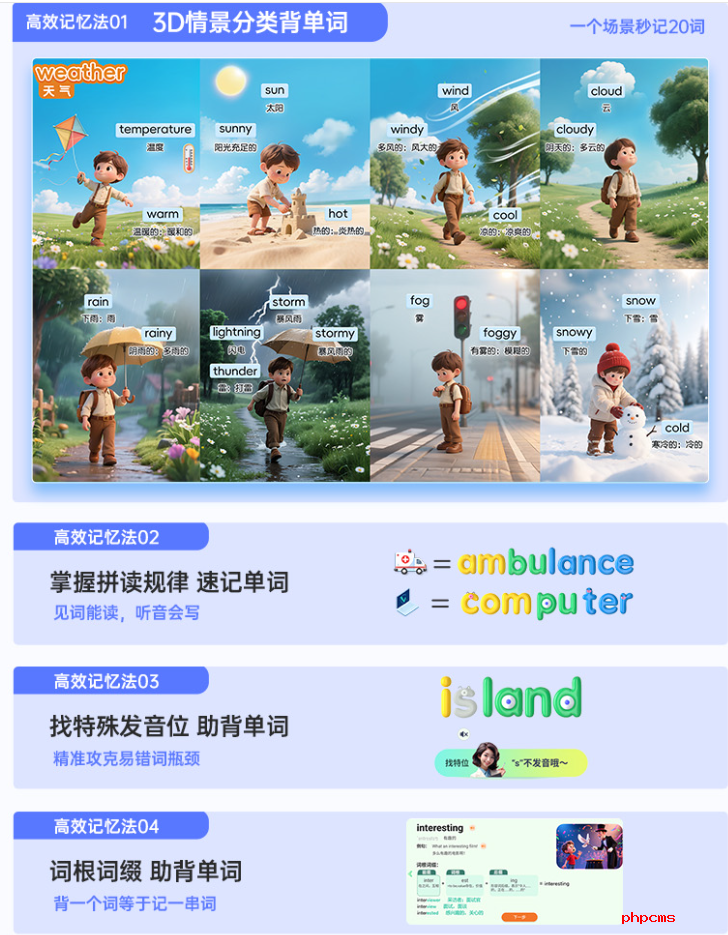 单词主线:跳出“死记硬背”的误区,用3D情景分龄法记单词:把词汇嵌入生动场景,再结合孩子年龄设计记忆逻辑,让单词学习变得直观、有趣且高效。孩子再也不用为“记不住单词”头疼,词汇量的积累将成为英语能力提升的“硬底气”。