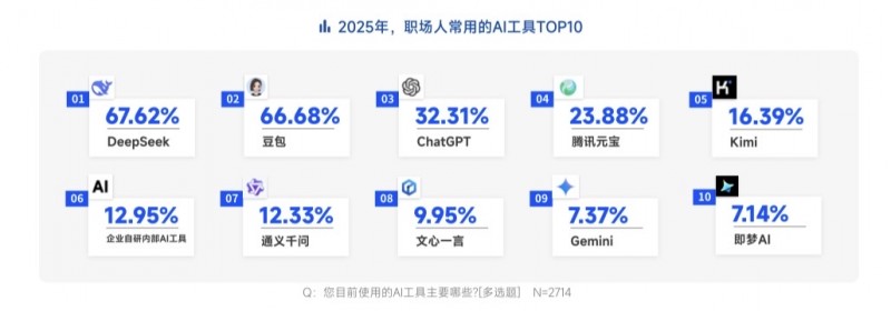 超九成职场人使用AI,DeepSeek、豆包、ChatGPT使用率最高