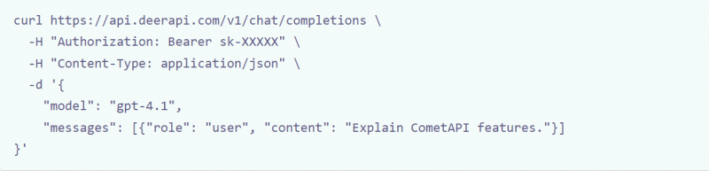 DeerAPI 兼容 OpenAI API 格式。例如调用 GPT-4.1: