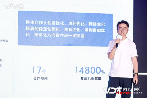 移动互联网时代,软硬件协同是提升用户体验的关键路径。抖音Android架构师卡涛在会上分享了抖音与vivo的战略合作。他表示,合作从最初的性能优化、功耗优化、网络优化,已经逐步拓展延伸到稳定性优化、资源优化、端侧智能优化和防劣化等七个方向,覆盖机型增长更是高达4800%。