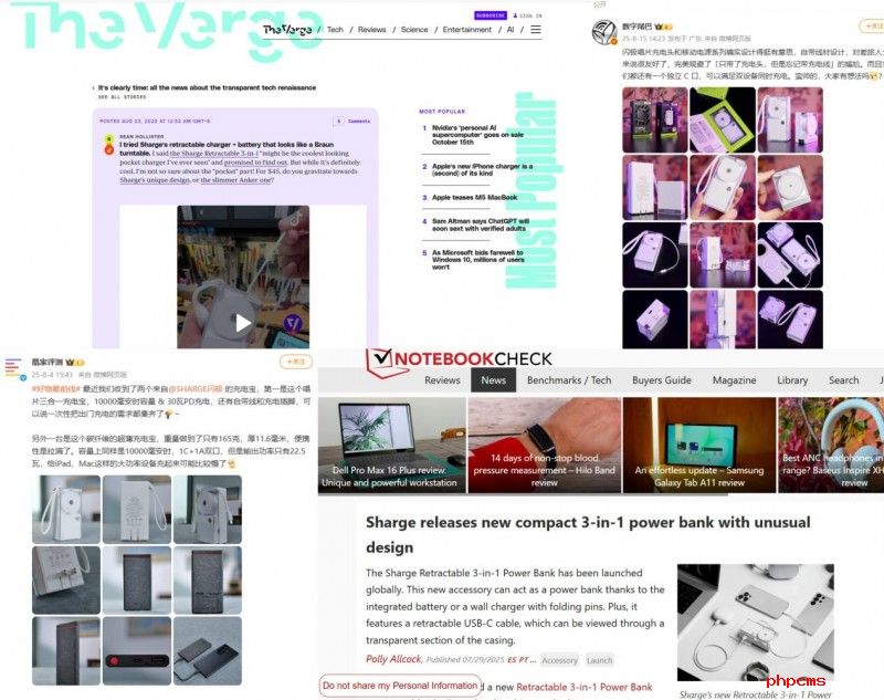 产品自上市以来,在全球市场持续引发关注。The Verge、Notebookcheck、凰家评测、数字尾巴等海内外知名科技媒体均对其给予赞许,称其“无疑是迄今见过最好看的充电宝”,并评价它“不只是一种充电工具,更是一件美学作品”。