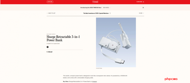 该产品以复古透明音响为灵感,融合博朗经典美学与现代实用科技,打造出兼具视觉吸引力与功能实用性的设计语言,被视为移动电源领域的创新突破。《时代》杂志在评语中对其给予了高度评价。