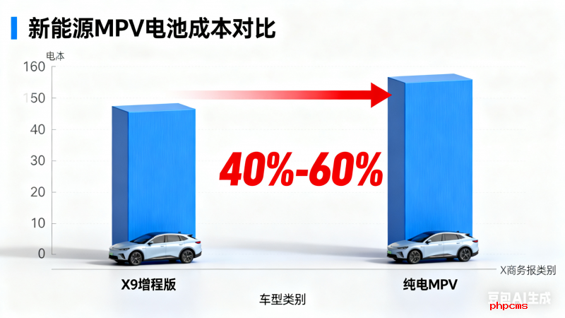 增程车型本身的结构特性也带来成本优势。同级纯电MPV需搭载70-100kWh电池,成本高达8-13万元,而X9增程版电池成本仅约1.9万元,再配合1.5T增程器,动力系统总成本比纯电车型低40%-60%。这种“大电池+增程器”的组合,既实现1602km综合续航,又通过成本控制将售价锁定在40万区间,形成“续航不打折,价格更亲民”的独特优势。