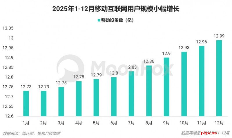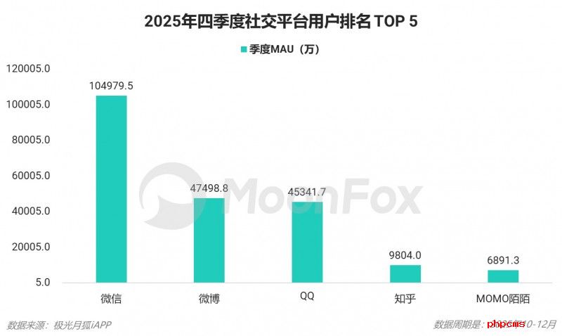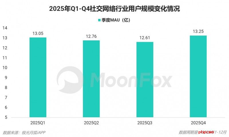 2025年四季度,社交网络用户设备规模达到13.25亿,稳稳占据移动互联网用户覆盖第一名。