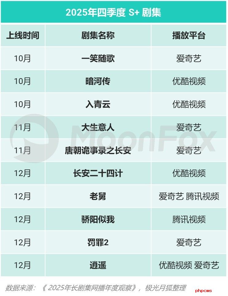 2025年四季度,各平台上新长剧中,有10部达到S+剧集水平。