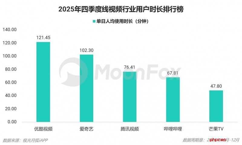 在用户时长方面,四季度在线视频行业整体人均使用市场同比保持稳定,略有增长。