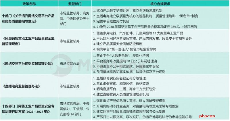 政策共同构建起覆盖生产、销售、售后全链条的电商监管体系,旨在提升网售产品质量合格率,规范平台与直播电商经营行为,切实保护消费者与中小商家合法权益,推动电商行业向合规化、高质量方向发展。