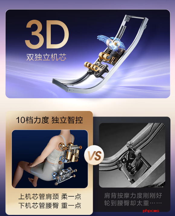 这一设计精准解决了传统按摩椅“力道一刀切”的痛点。在实际运行中,上机芯专注于肩颈与上背部的精细揉捏,力道舒缓柔和,完美适配肌肉较薄的区域,避免产生硌压感;下机芯则主攻腰臀与大腿根部,施力扎实深入,能稳稳顶住深层酸胀点进行推揉,满足对力道有更高需求的部位。尤为关键的是,上下机芯均支持10档力度的独立调节与记忆,用户可自由组合,例如为脆弱的肩颈选择2-3档轻柔模式,同时为疲劳的腰部设定7-8档深度按压,真正实现“上柔下刚”的个性化按摩。