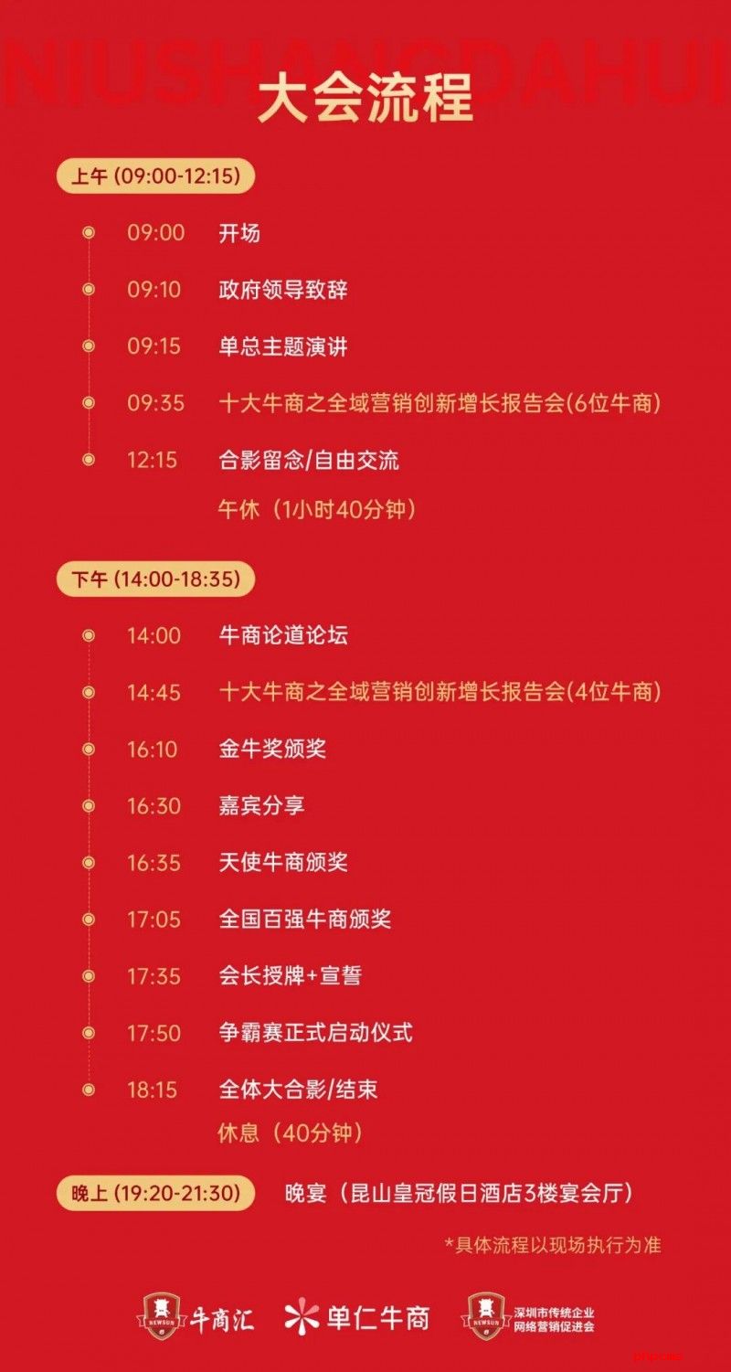 本次大会由深圳市传统企业网络营销促进会、牛商汇、单仁牛商集团联合主办,将于4月19日在昆山皇冠假日酒店盛大启幕!历经十六届沉淀,本届千人盛会全面升级,顶尖企业家、行业精英、政府领导齐聚一堂,是中小企业抢抓风口、拓展人脉、破解难题的绝佳平台。